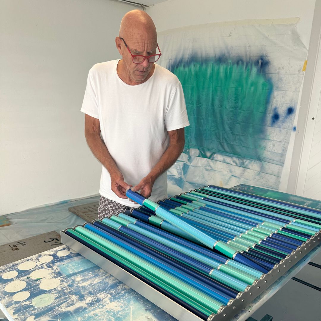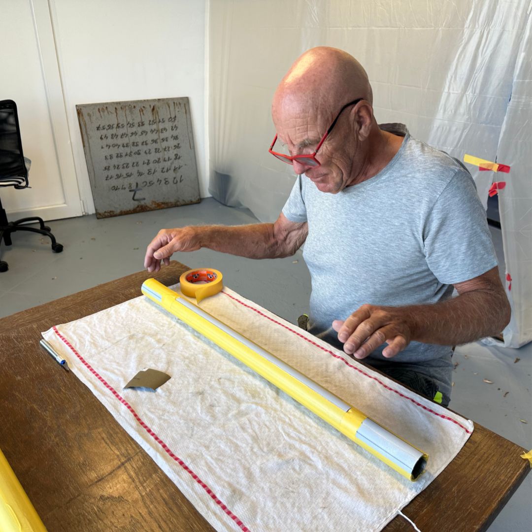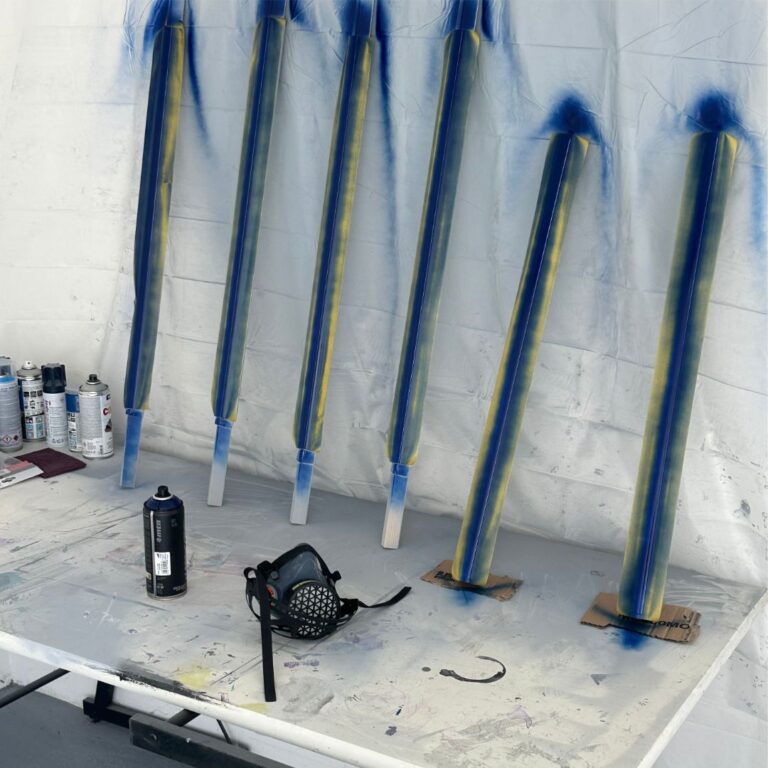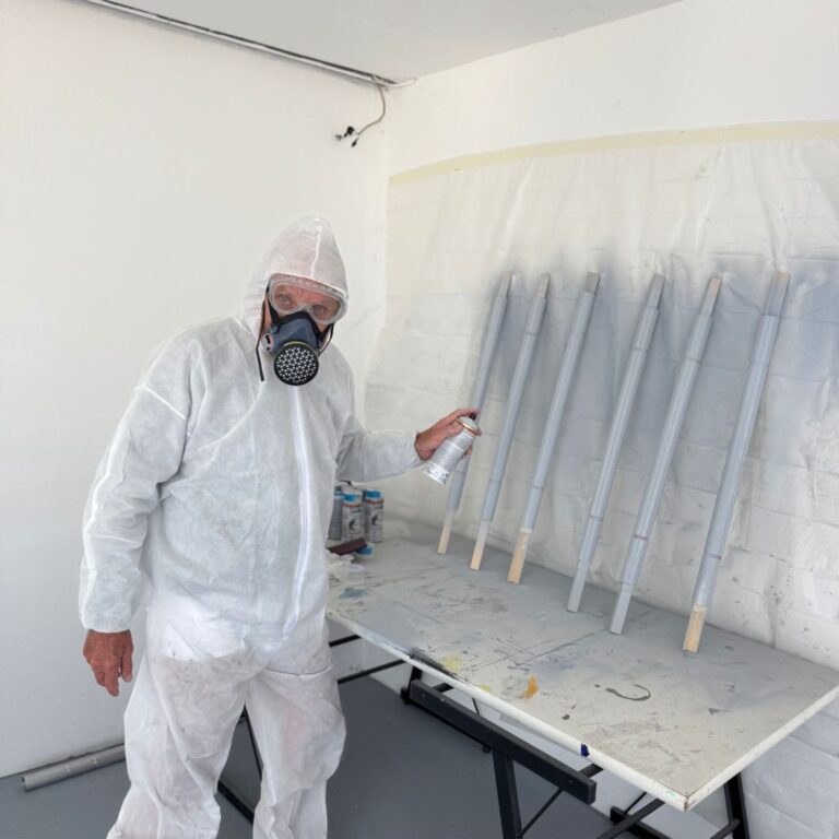 L’élément clé de « DANSE DES COULEURS » réside dans ses tubes aluminium rotatifs, chacun des 23 tubes est munis de 9 couleurs et est fixer à ses extrémités par un roulement à bille, qui lui permet de tourner sur lui-même. Lorsque l’on lance la rotation, une magie opère : les couleurs se mélangent, les formes se redéfinissent et les motifs se métamorphosent. Ce mouvement dynamique transforme l’œuvre, créant une expérience visuelle unique à chaque rotation.